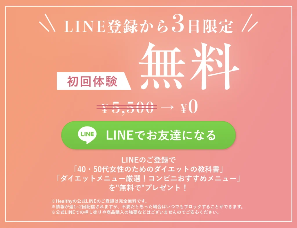 Healthy体験希望の方は公式LINEをご登録ください。公式LINEでは体験予約だけではなく、有益な健康情報も毎週配信しています!