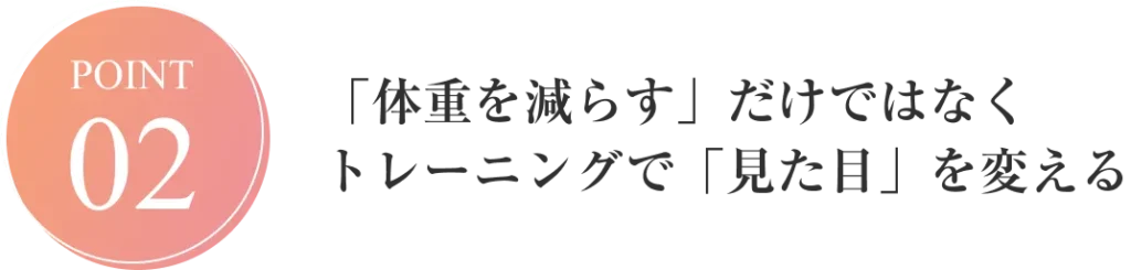 ダイエット=「体重を減らす」 ここに目的が集中してしまって精神的に辛くなる方が多いです。 Healthyでは「体重を落とす」だけではなく、 「見た目」を変えるためにお客様に必要な筋肉をトレーニングで鍛えていきます。