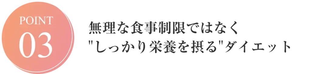 ダイエットにおいて過度に食事制限をしてしまうと、かえって代謝を下げてしまいます。 40・50代女性に必要な 『しっかり食べて代謝を落とさない』 ここに着目してダイエットサポートをいたします。