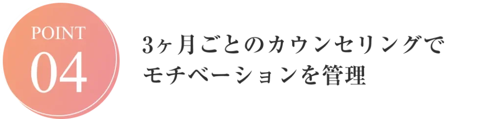 3ヶ月に1回カウンセリングの時間を取り、目標に対してどのような進捗で進んでいるかすり合わせします。