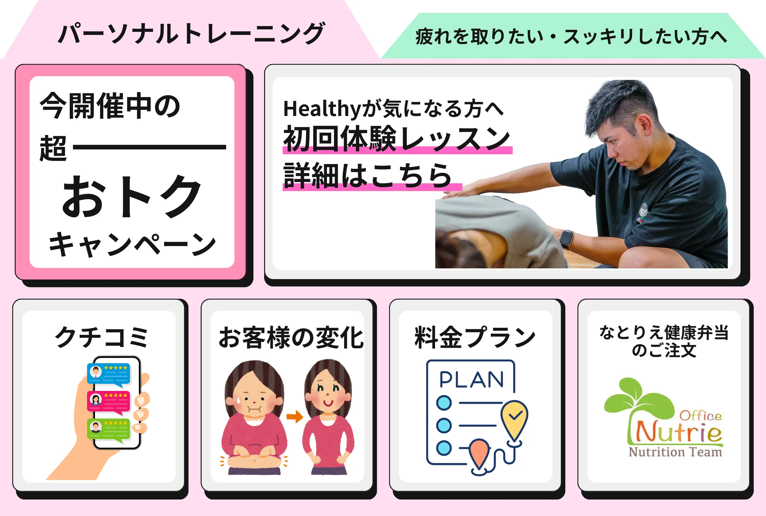 戸田市のパーソナルジムHealthyがお客様に提供している内容を体験できます。